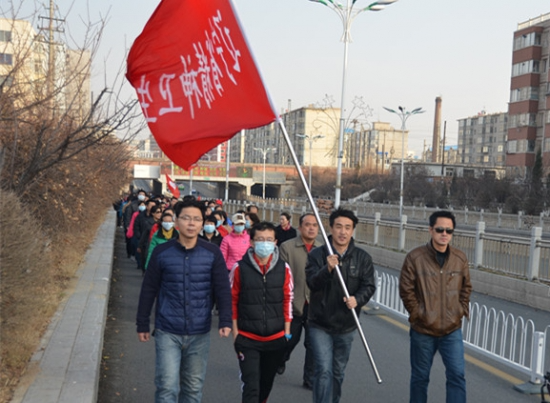 2014年11月26日,辽宁省精神卫生中心开展了职工徒步走活动,除在岗值班的工作人员外,有180人积极参加了此项活动。从医院门口到开原铁西工业园区,全程7.5公里。看大家的精神状态,乐此不疲!在徒步旅行中,大家感受着开原的发展变化,感受着大自然的气息、感受着生命的意义以及来自身心的感动!