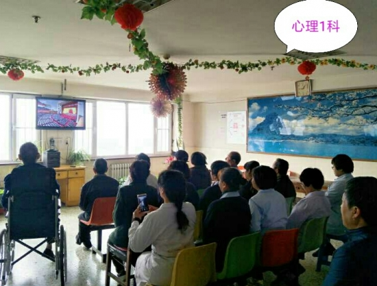 辽宁省精神卫生中心全院上下积极收看大会实况。在机关楼的学术报告厅里,党政领导同行政科室人员一起集体观看;在病房活动室,医护人员陪同患者们一起观看;在门诊医技的小办公室里,医护人员也要忙里偷闲瞟上两眼。