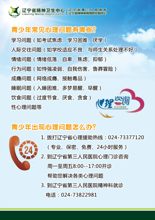 1. 拨打辽宁省心理援助热线:024-73377120(专业、保密、免费 24小时服务)