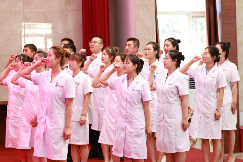 医心仁术,医脉相传。在这个神圣的节日里,17名青年医师一起举起右拳庄严宣誓:“自觉维护医学的尊严和神圣,敬佑生命,平等仁爱,患者至上,真诚守信,精进审慎,廉洁公正,终身学习,努力担当增进人类健康的崇高职责。以上誓言,谨记于心,见于行动。”青年医师们铿锵有力的誓言,表达积极投身于医疗事业,努力做人民健康的忠诚卫士的信心与决心。